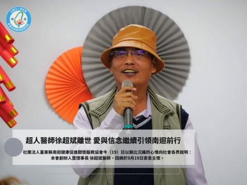 【訃告】徐超斌醫師醫生奉獻偏鄉醫療,守護在地居民健康,留下無數深遠足跡與感念。